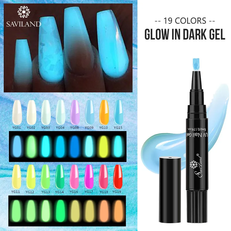 Limited Price of SAVILAND Glow In The Dark Nails Gel Polish Pen Glitter Hybrid Dawdler UV Nail Art Gel Lacquer Gel P